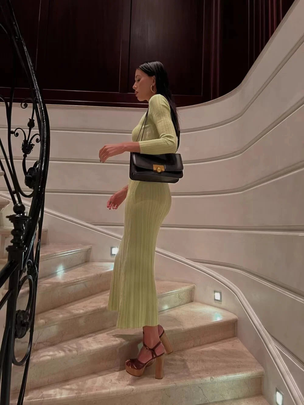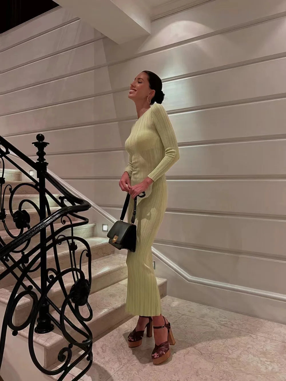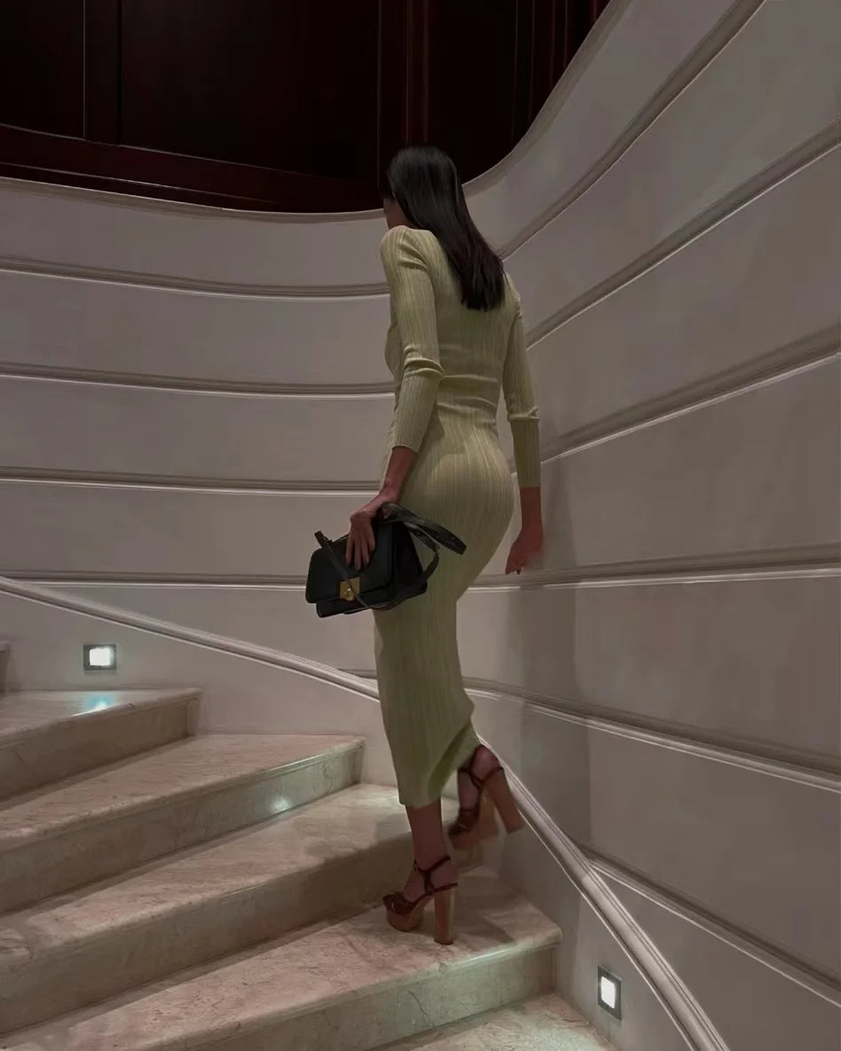 2024 Women Spring Solid Maxi Long Sweater Dress Elegant Casual Fashion Pullover Bodycon Slim Streetwear Knitted Dress Autumn