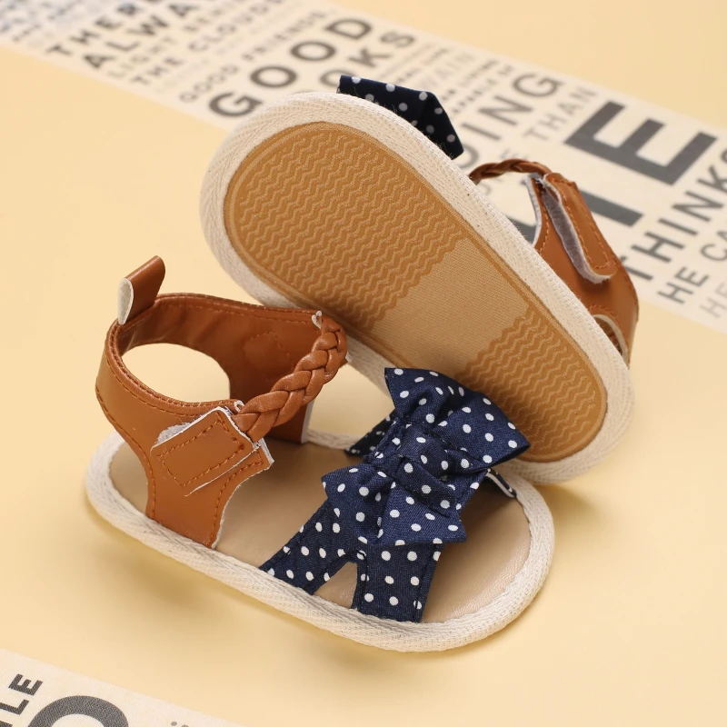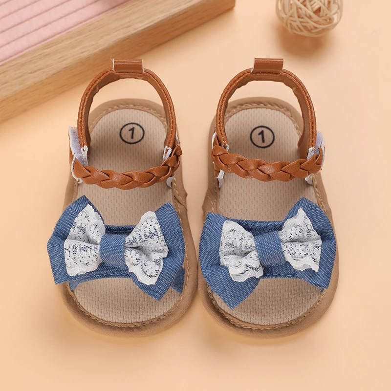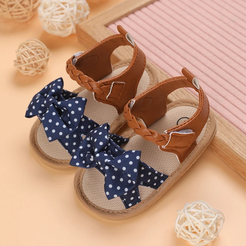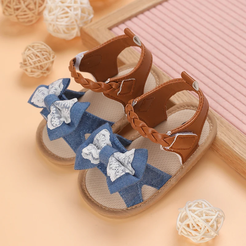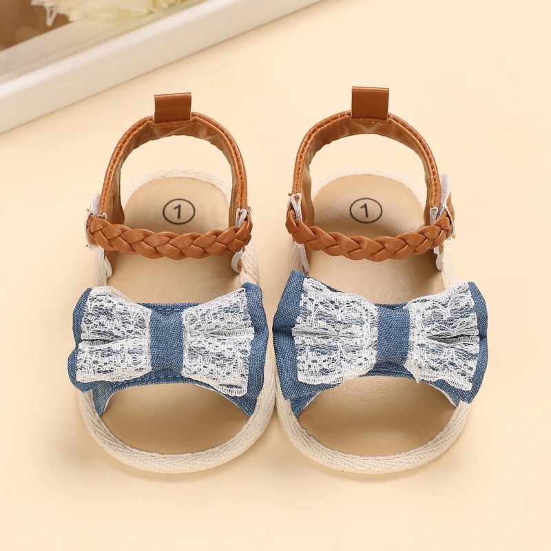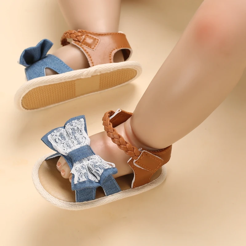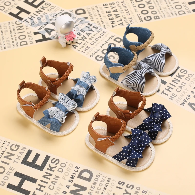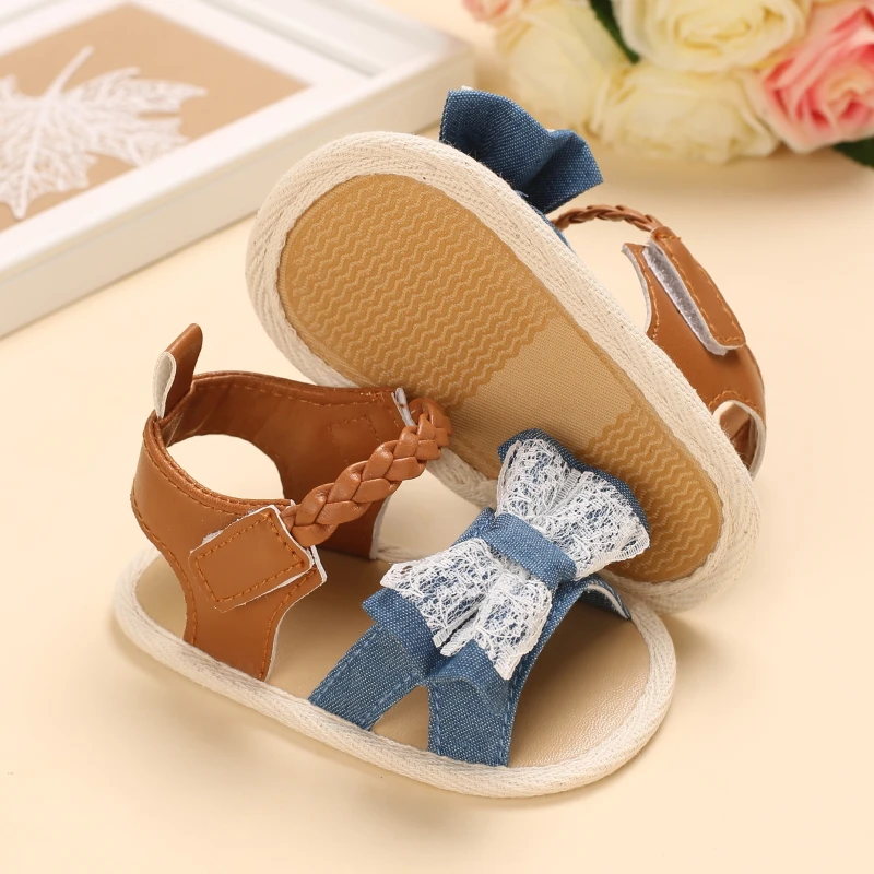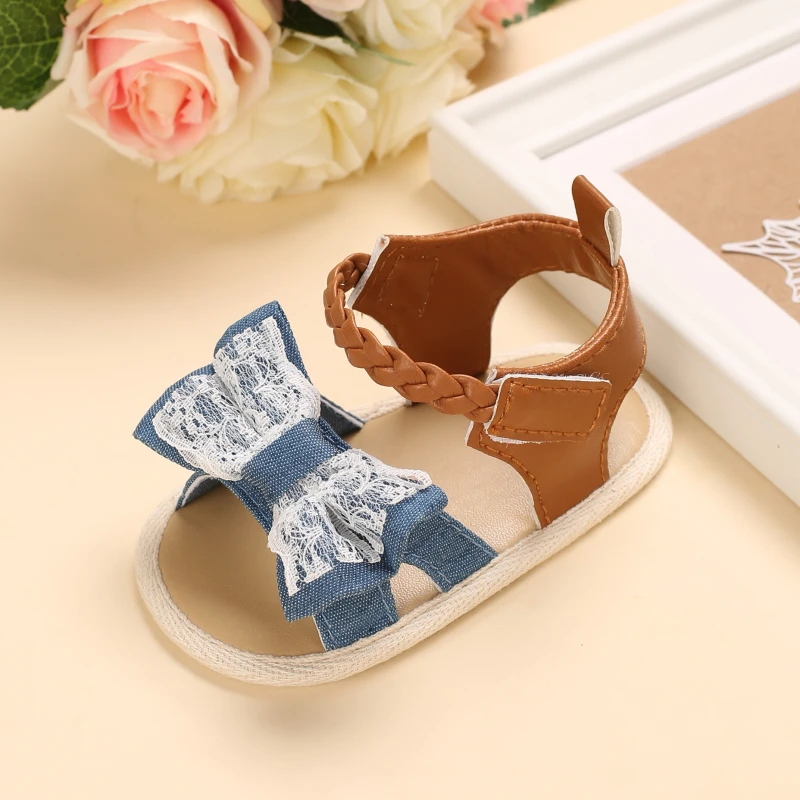 2025 Infant Baby Girls Summer Sandals with Flower Bowknot Soft Sole Wedding Dress Flats Newborn First Walkers Crib Dress Shoes