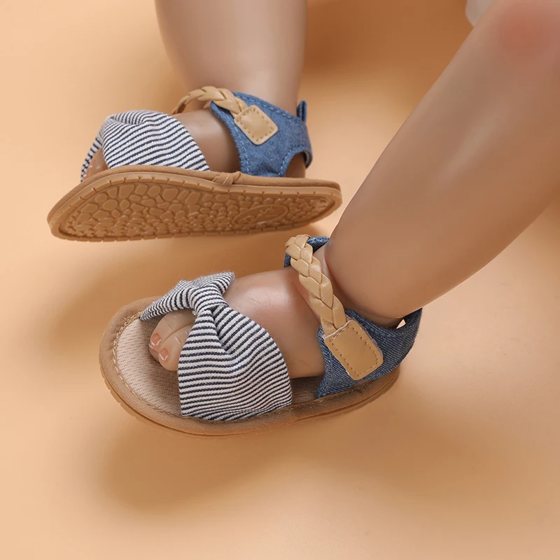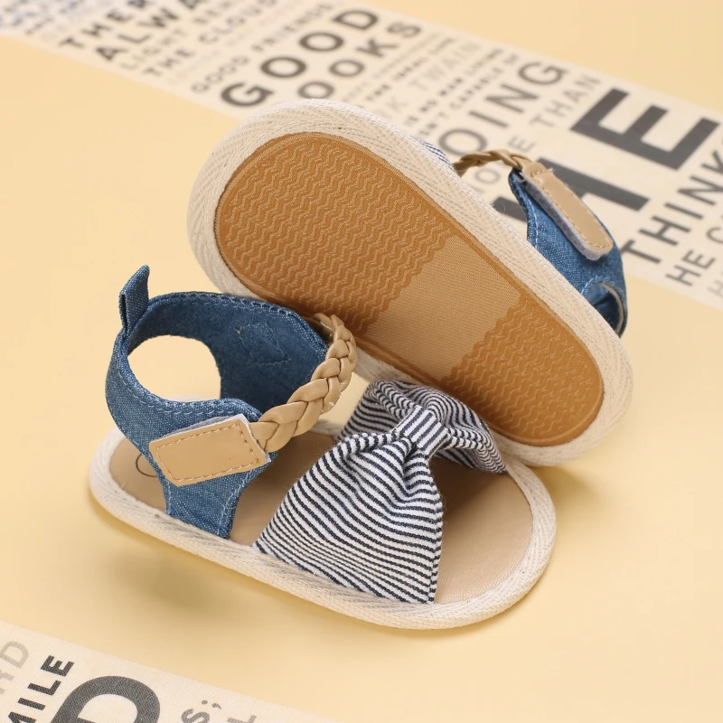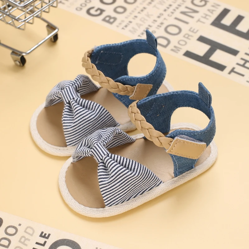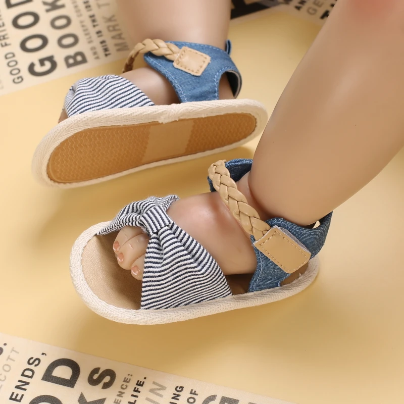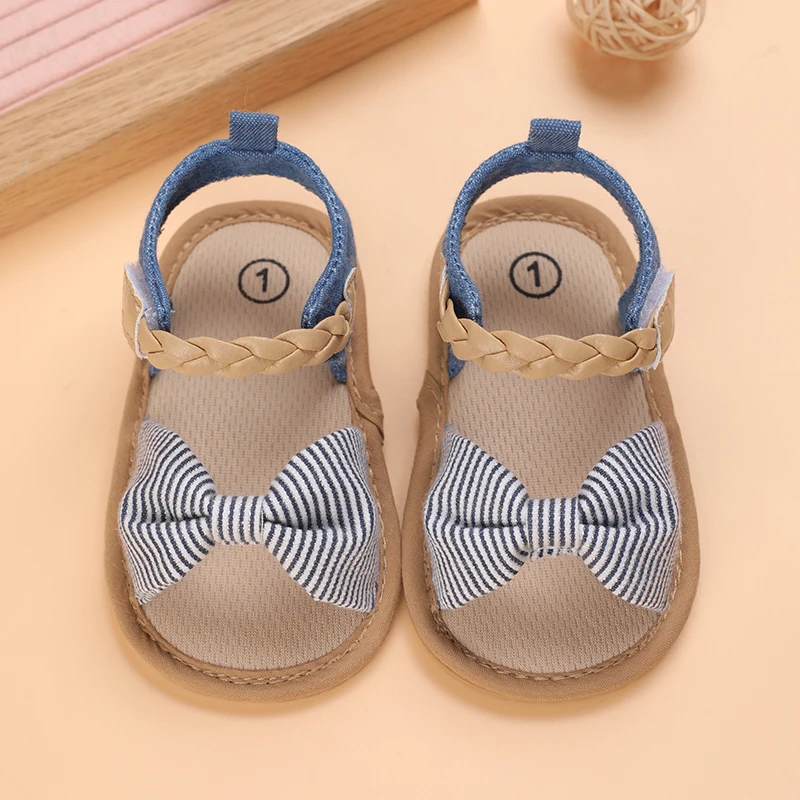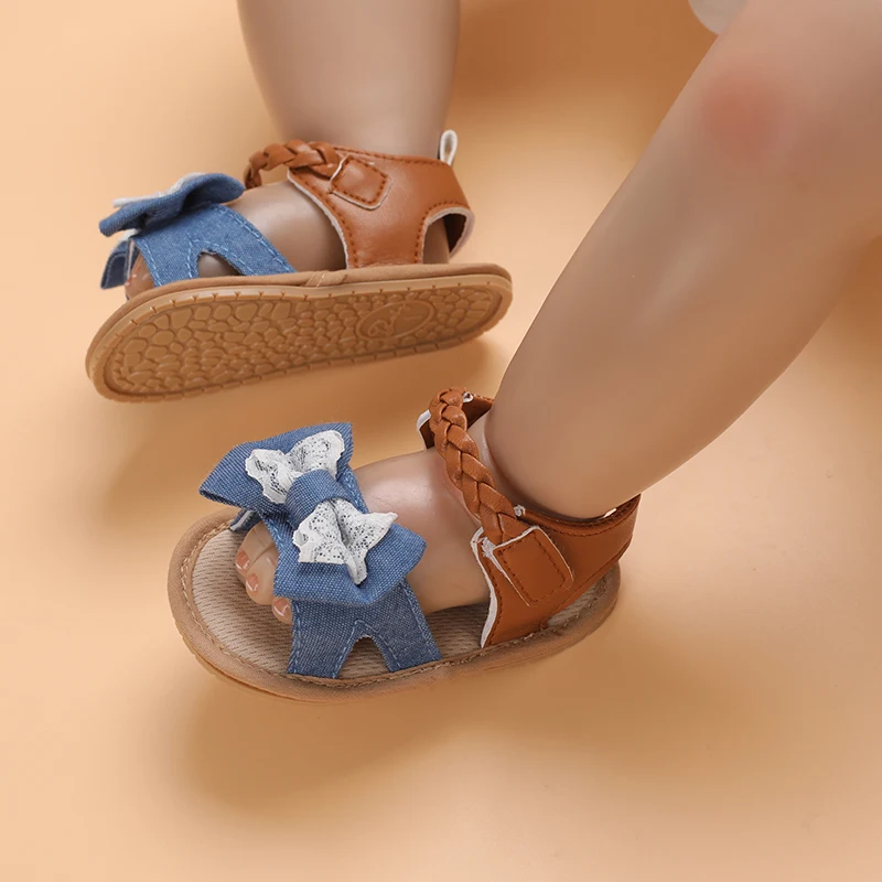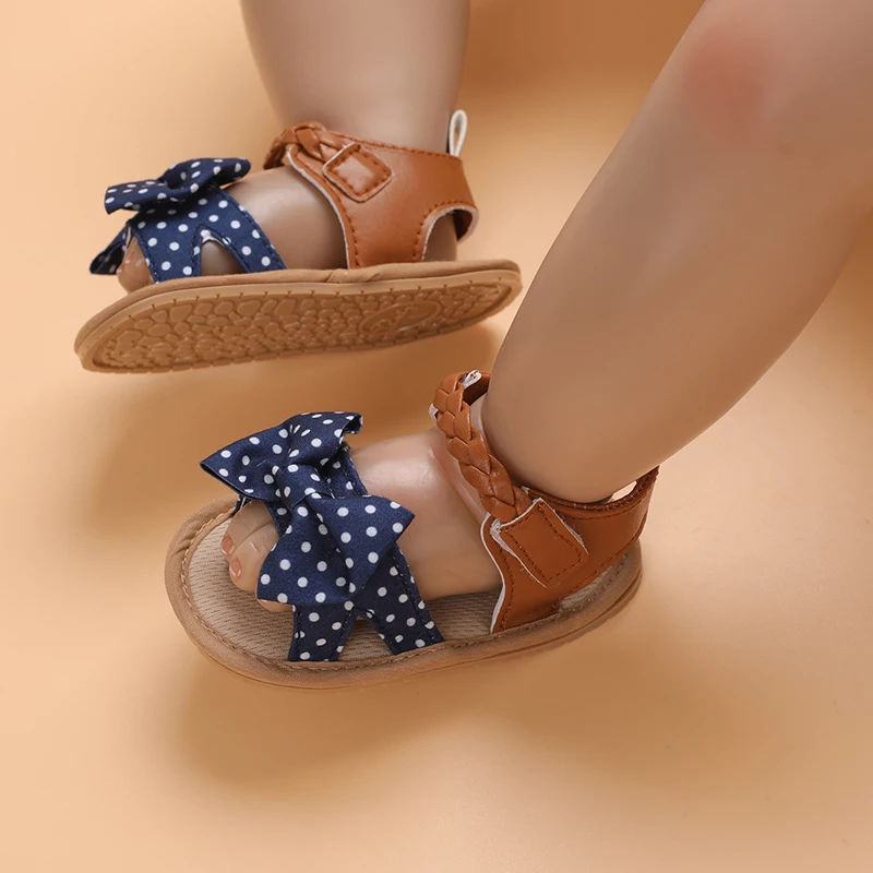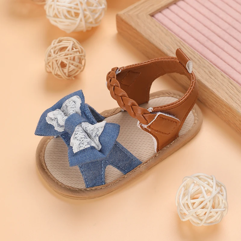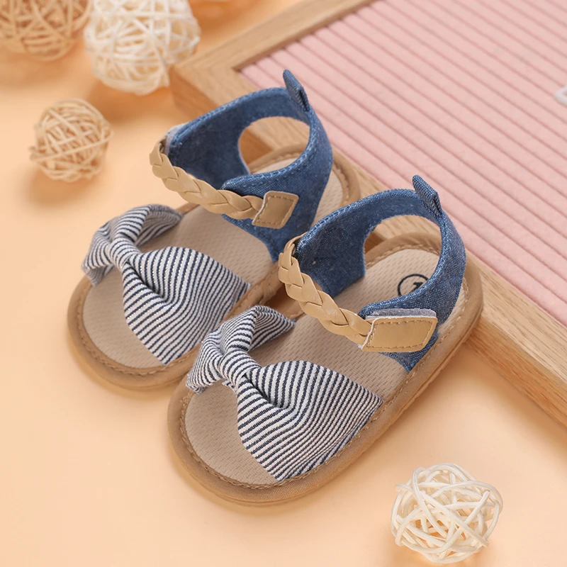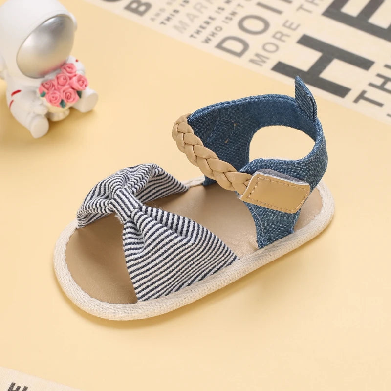 2025 Infant Baby Girls Summer Sandals with Flower Bowknot Soft Sole Wedding Dress Flats Newborn First Walkers Crib Dress Shoes