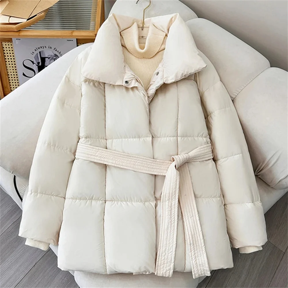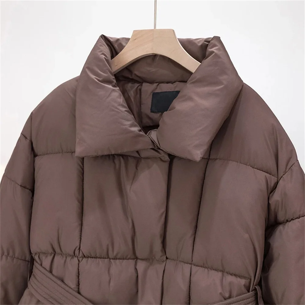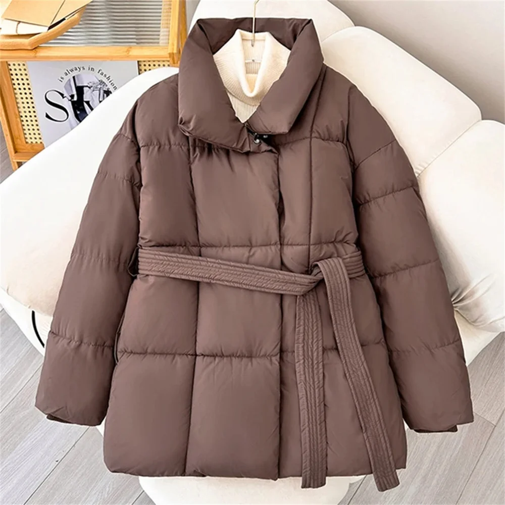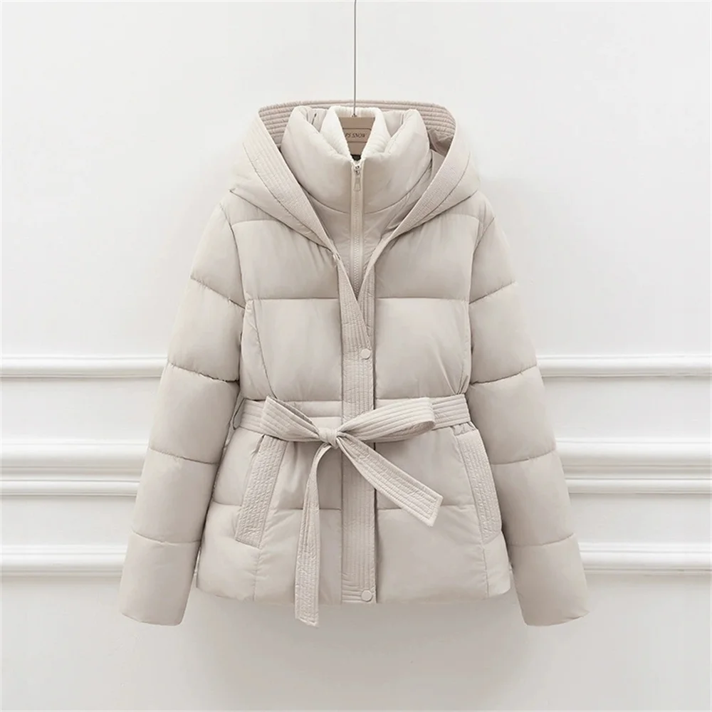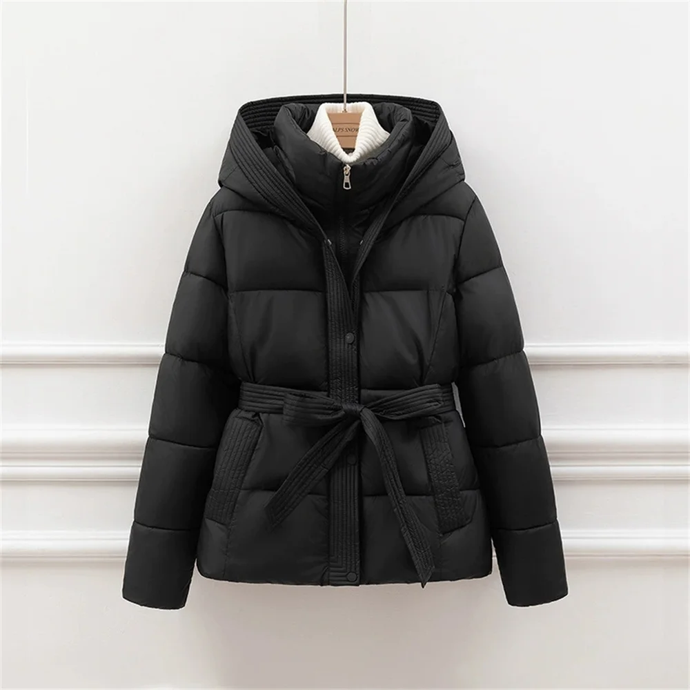 2025 Jacket With Belt Winter Jacket Woman Parkas Solid Thicken Warm Female Hooded Snow Wear Coat Cotton Padded Outwear Clothes