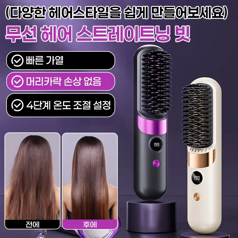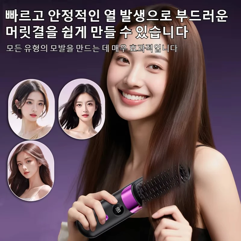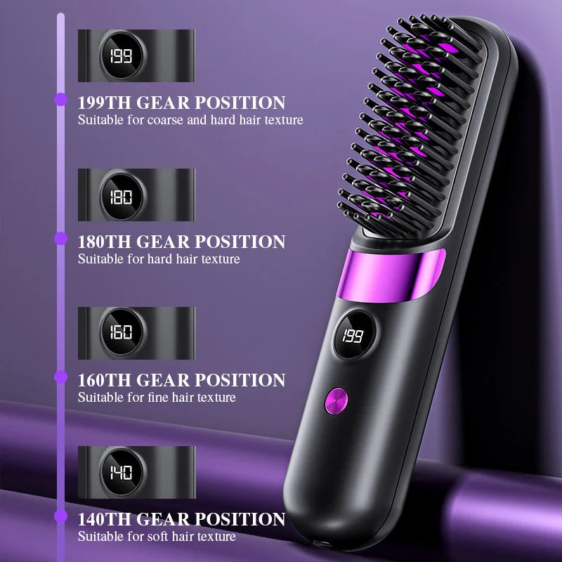 2025 New USB Charging Cordless Hair Straightener Brush-Portable Hair Straightening Brush LED Display for Women Travel Gift